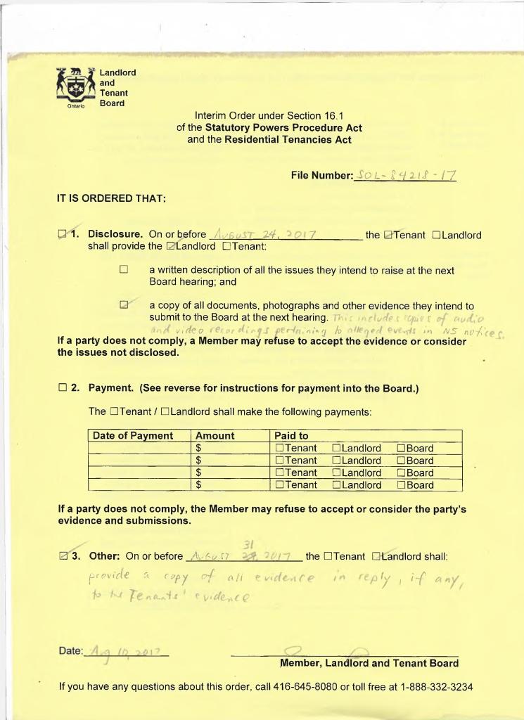 So far, this disagreement with our landlord had used up 4 hours 40 minutes of hearing time at the LTB, in 6 hearings, one by telephone, five in person (counting the Case Management Hearing and mediation session of May 19, 2017 as hearings). It has also used up 6 hours and 20 minutes of a mediator’s time. It has resulted in three responses by HPS to a complaint (one by the tenants). I’ll keep a running tally.