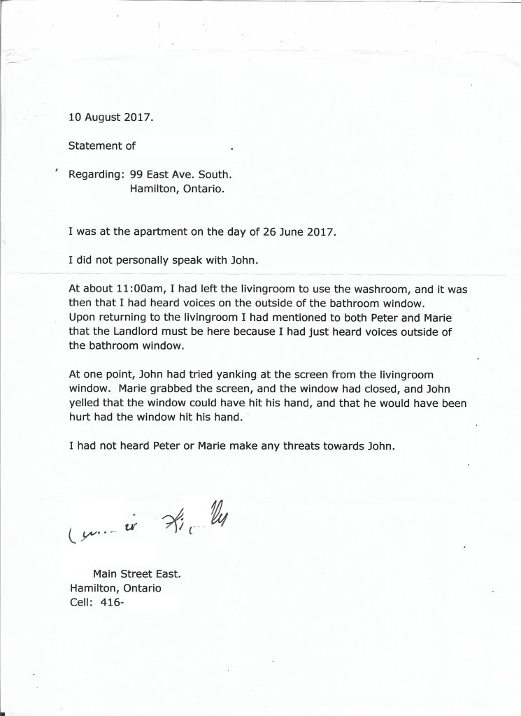 John also commits provable perjury in this hearing, multiple times. By perjury, I mean deliberate misrepresentation of fact intended to mislead the member. He also mixes incidents from different dates into one story, equivocates, and does his best to create confusion. He also does his best to paint us as “professional tenants”.