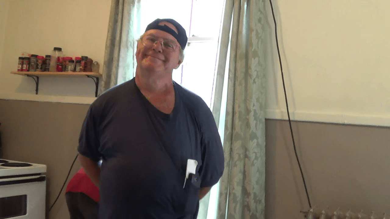 1:04:25 – John returns to the unit. Work resumes. John helps a bit at first, then watches.