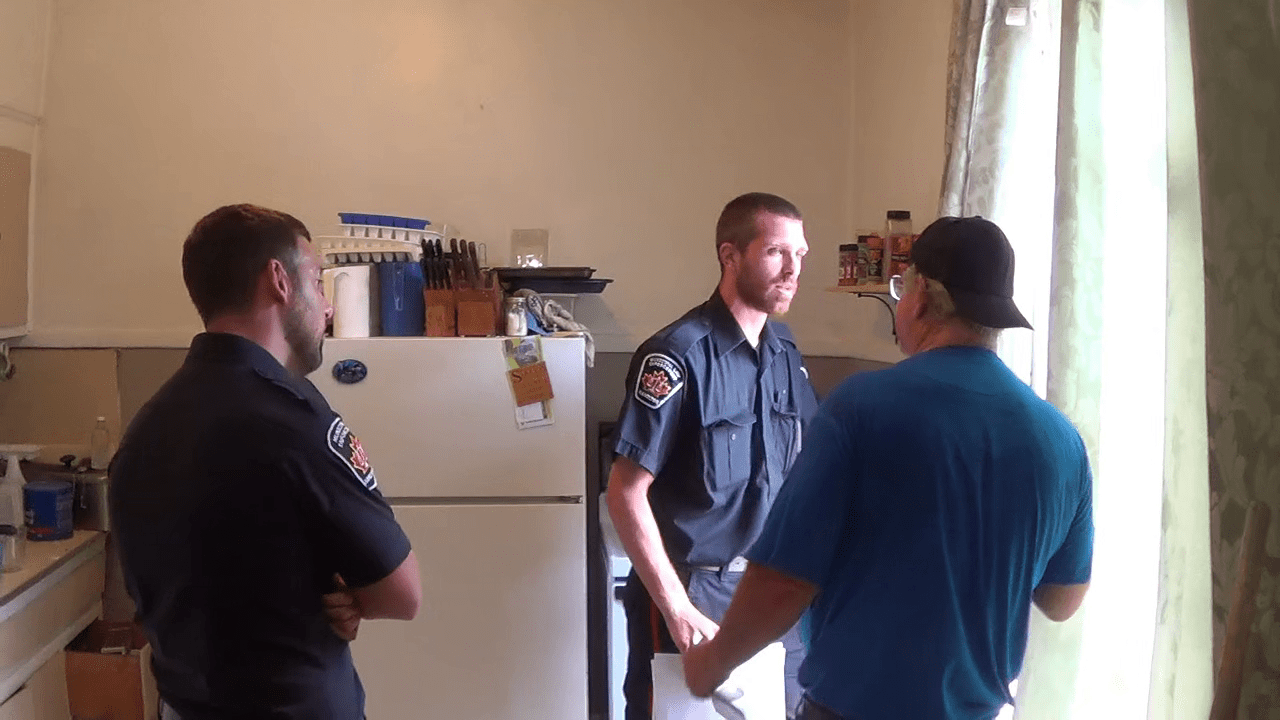 JC: Hello. Can you get the camera on these guys? Cuz these are the nice guys from the city of Hamilton. Okay? And they’re gonna come up and inspect all the work I’ve done. Is that okay with you? I’m asking you a question, is that okay with you?