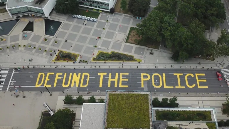The protest was held to coincide with the Hamilton Police Services Board meeting going on at City Hall.
