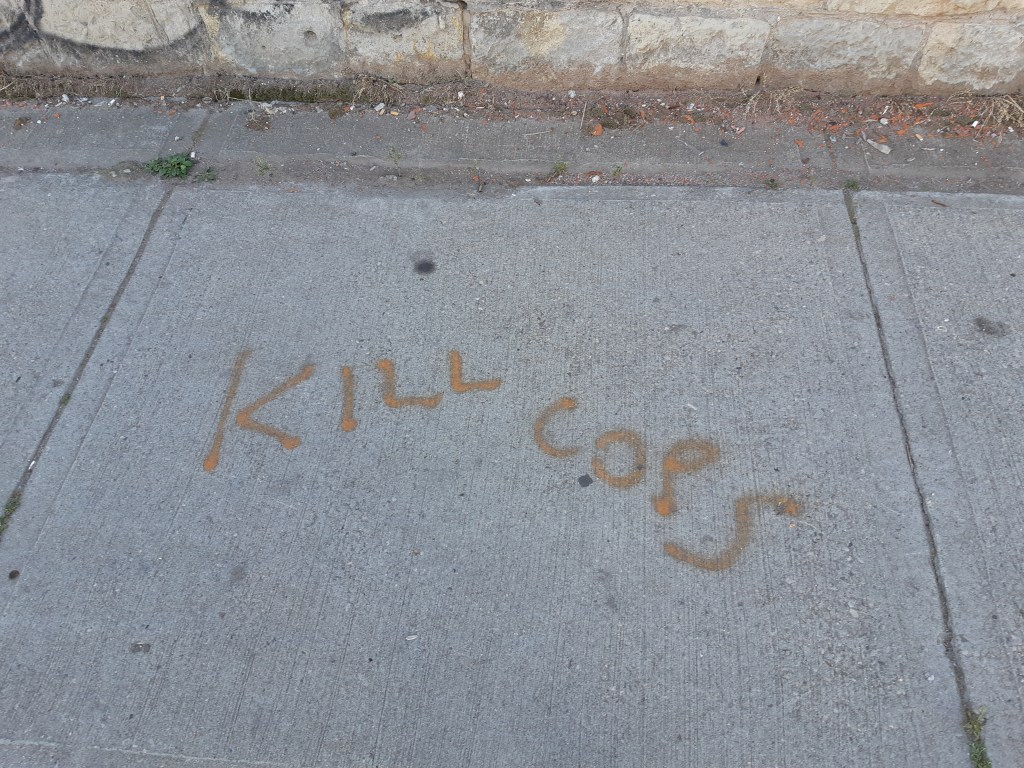 That’s a bit out of line, I think. Understandable, but out of line, and the graffiti should be removed. It looks like the same person, using the same paint, in each instance I’ve seen.