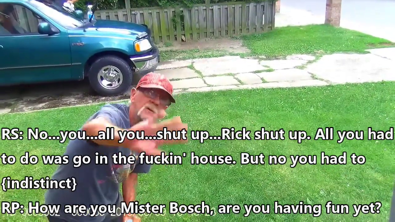 RS: This ain’t got nothing to do with Rick. The other week you just stood over there and stared at me. You walked by me three times there goin’ to the store. You stared at he house. You don’t have to look this way. You go walking that way you look straight,